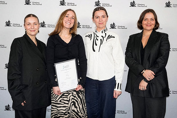 Clara Jantzen Kreinøe, Emilie Thalund, Anna Dammegaard Søllested og Louise McLaughlin vandt hele to priser ved Göteborg Film Festival. Foto: HAVE Kommunikation